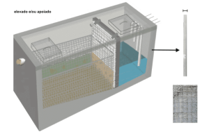 c)- CONCRETO ARMADO COM MENOR BITOLA- O tamanho da bitola é um critério do engenheiro, ciente que, quanto maior for a bitola, maior será a largura da parede do tanque e o seu peso. Para as informações da construção, manutenção e operação de tanques sépticos, consulte a ABNIT NBR 7229 e para as definições de concreto na ABNIT NBR 6118.