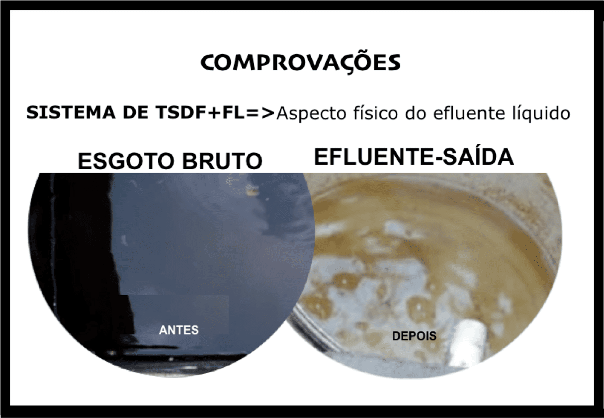 Ressaltamos que o TSDF é um modelo de utilidade, que realiza o mesmo processo de um tanque séptico convencional, apresenta melhorias significantes sobre seus resíduos efluentes, a exemplo da condição do corpo hídrico/efluente, cuja a vazão é controlada pelo dispositivo de saída, esse controle permite a adaptação da tecnologia/TSDF com qualquer tecnologia de tratamento complementar do efluente líquido, neste caso, foi adequado para os filtros lentos.